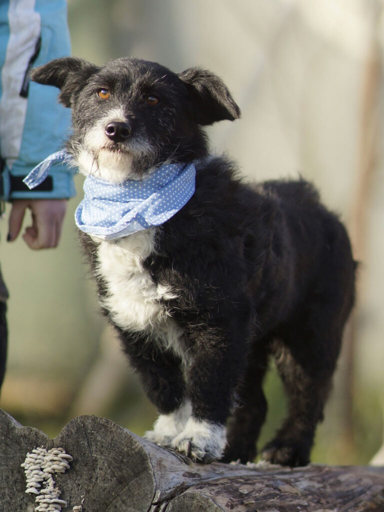 Neue Umgebungen möchte die neugierige Hündin am liebsten immer sofort erkunden und klettert dabei gerne auch mal auf Baumstämme oder sonstige Aussichtspunkte.